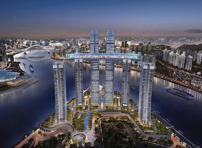 Ինչպես ներկայացնում է CNN-ը, Չունցին քաղաքում կառուցվող համալիրը զբաղեցնում է 1.12 մլն քառ. մետր տարածք, կազմված է 8 աշտարակից և դրանք միավորող հսկայական կամրջից, որն անվանում են «հորիզոնական երկնաքեր»: