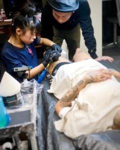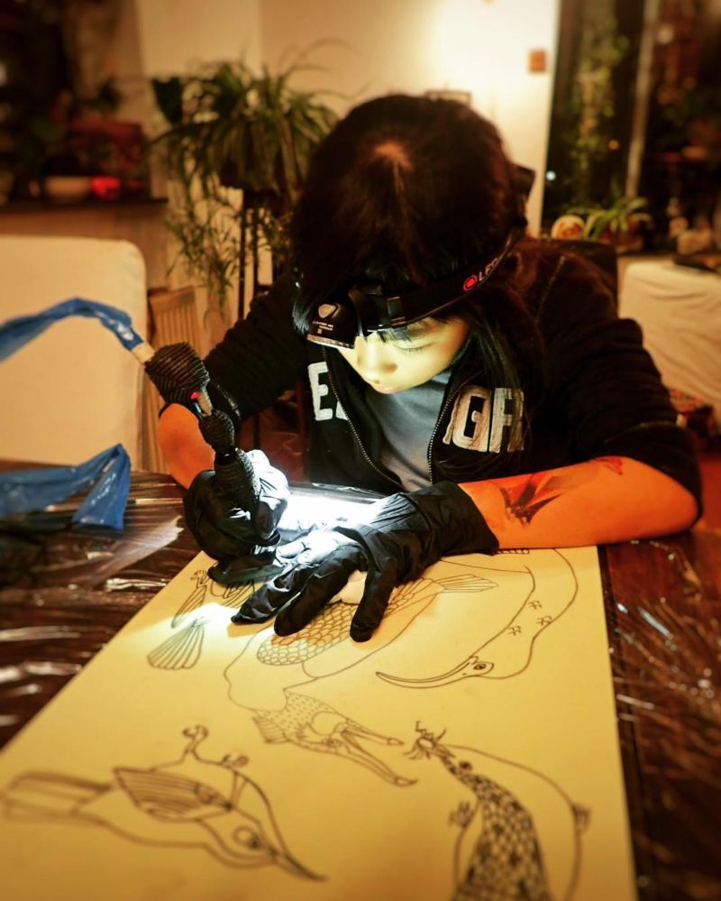 10-ամյա ճապոնուհին դաջվածքների գեղեցիկ էսքիզներ է մտածում և ինքնուրույն դաջում