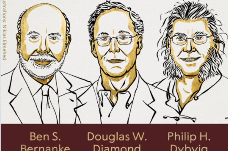 Տնտեսագիտության Նոբելյան մրցանակն այս տարի շնորհվել է ԱՄՆ Դաշնային պահուստային համակարգի նախկին նախագահ Բեն Բեռնանկեին և ամերիկացի հետազոտողներ Դուգլաս Դայմոնդին և Ֆիլիպ Դիբվիգին՝ բանկերը, ֆինանսական ճգնաժամերի պատճառներն ու հետևանքներն ուսումնասիրելու համար։ Տնտեսագիտության