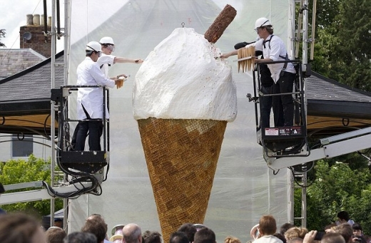 Անգլիայի Գլոուսթեր քաղաքում խոհարար Հեսթոն Բլումենֆալը ներկայացրել է աշխարհի ամենամեծ պաղպաղակը, որը կշռում է մեկ տոննա: Պաղպաղակի բարձրությունը ավելի քան 4 մետր է, իսկ սառեցման համար պահանջվել է մեկ ամիս: Աշխարհի ամենամեծ վանիլային պաղպաղակը տեսնելու և, իհարկե, համտեսելու ...